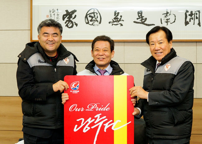 윤장현 구단주는 “150만 광주 시민의 힘으로 기적과 같은 승격을 이뤄냈다”면서 “현재에 안주하지 않고 더욱 힘차게 도약할 수 있도록 시민여러분의 많은 관심과 사랑을 부탁한다”고 당부했다.