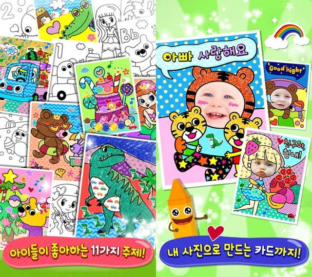 핑크퐁! 스티커 색칠놀이(무료)앱은 색칠과 스티커를 통해 창의력과 표현력을 쑥쑥 키워주는 색칠놀이 앱이다. 기본적으로 칠도구와 스티커가 내장돼 있고, 사진을 올려 나만의 색칠카드를 꾸밀수도 있다.