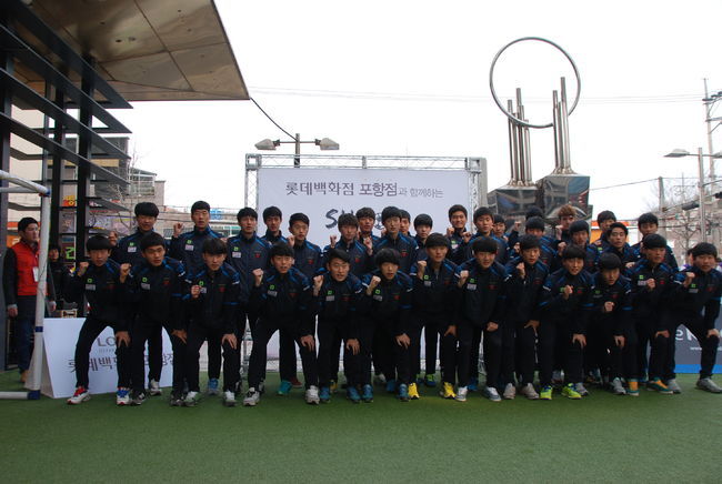 포항 스틸러스의 유소년팀인 포철고(U-18팀)가 소아암 환아들을 돕기 위해 지난 15일 포항 롯데백화점에서 펼쳐진 슛포러브 행사에 참여해 큰 보탬이 됐다.