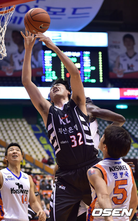 16일 오후 부산 사직실내체육관서 열린 2014~2015 KCC프로농구 부산 KT와 인천 전자랜드의 경기,1쿼터 kt 김성원이 리바운드를 하고 있다
