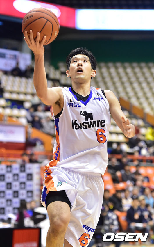 16일 오후 부산 사직실내체육관서 열린 2014~2015 KCC프로농구 부산 KT와 인천 전자랜드의 경기,3쿼터 전자랜드 차바위가 레이업슛을 성공시키고 있다.