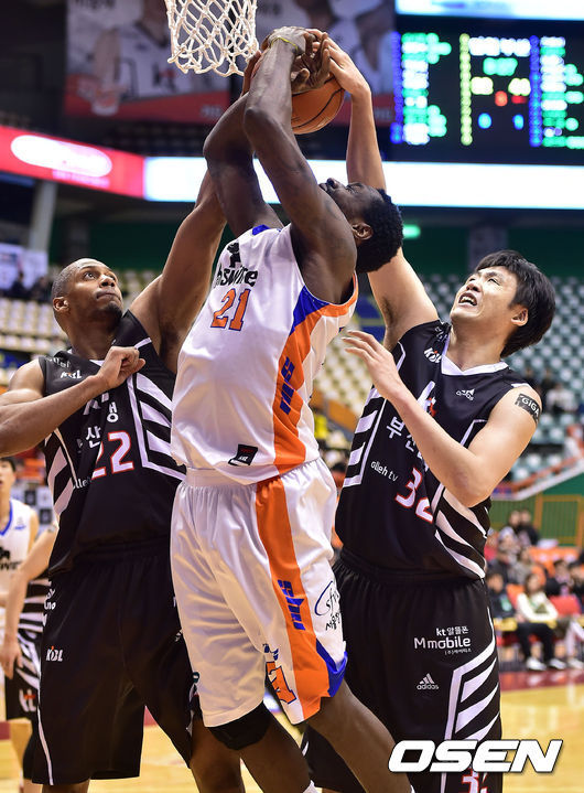 전창진 감독이 이끄는 부산 KT는 16일 부산사직체육관에서 열린 2014-2015 프로농구 인천 전자랜드와 경기서 골밑장악에 성공한 김승원(14점, 6리바운드, 4블록슛)과 김현수(18점, 5리바운드)의 활약에 힘입어 71-64로 승리했다. 이날 승리로 5연패 탈출에 성공한 KT는 6강 PO 진출을 위한 희망을 이어갔다.