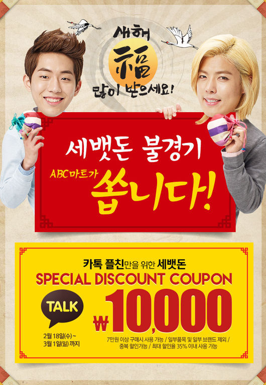 해당 이벤트는 오는 18일부터 3월 1일까지 진행되며, 이벤트 기간 동안 ABC마트 카카오톡 플러스 친구 모두에게 1만원 할인 쿠폰을 증정한다. 해당 할인 쿠폰은 일부 상품을 제외한 7만 원 이상의 제품 구매 시 최대할인율 35% 이내에서 사용할 수 있다. 이와 함께 신학기 시즌을 기념, 학생증을 제시하는 학생 고객에게는 신발 구매 시 정상가 기준 10% 할인의 혜택도 동시 적용된다.(일부 품목 및 브랜드 제외)