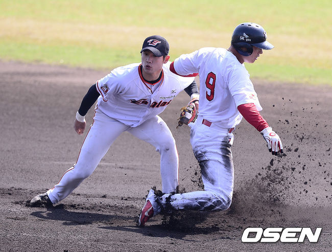 한화 이글스가 17일 오후 스프링 캠프를 차린 일본 오키나와 고친다 구장에서 SK 와이번스와 연습경기를 가졌다.