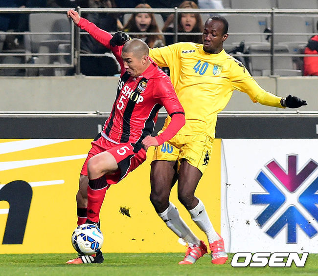17일 오후 서울월드컵경기장에서 열린 2015 AFC 챔피언스리그 플레이오프 3라운드 FC 서울과 하노이 T&T의 경기 후반 차두리가 볼다툼을 하고 있다.