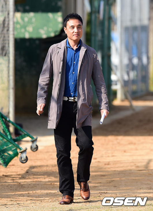 송진우 KBSN 해설위원이 한화 캠프를 찾아 훈련을 지켜보고 있다.