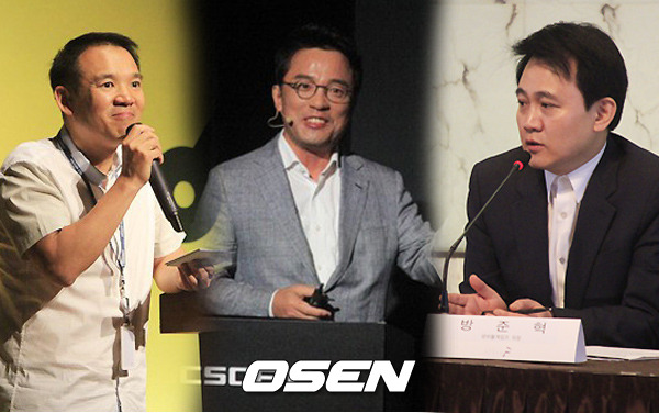 왼쪽부터 넥슨 김정주 회장, 엔씨소프트 김택진 대표, 넷마블게임즈 방준혁 의장.