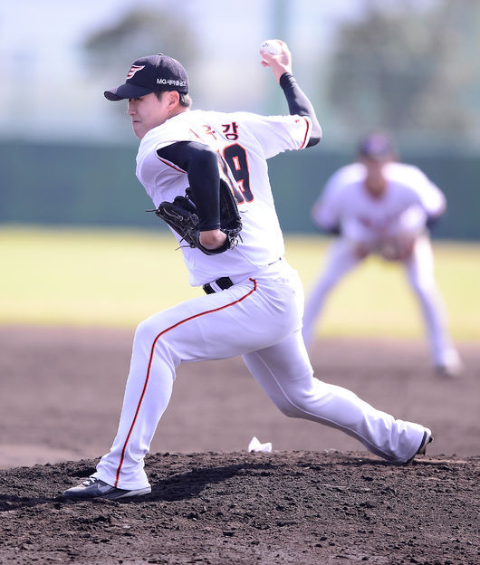 일단 정대훈이 가장 좋은 모습을 보여주고 있다. 정대훈은 지난 13일 고치에서 치러진 세이부 라이온스 2군과 연습경기에서 구원으로 나와 2이닝 탈삼진 2개 무실점 퍼펙트로 막더니 17일 오키나와 캠프 첫 경기였던 SK전에서 선발로 3이닝 1사구 1탈삼진 무실점 노히트 투구를 했다. 김 감독도 "정대훈이 많이 늘었다"고 칭찬했다.