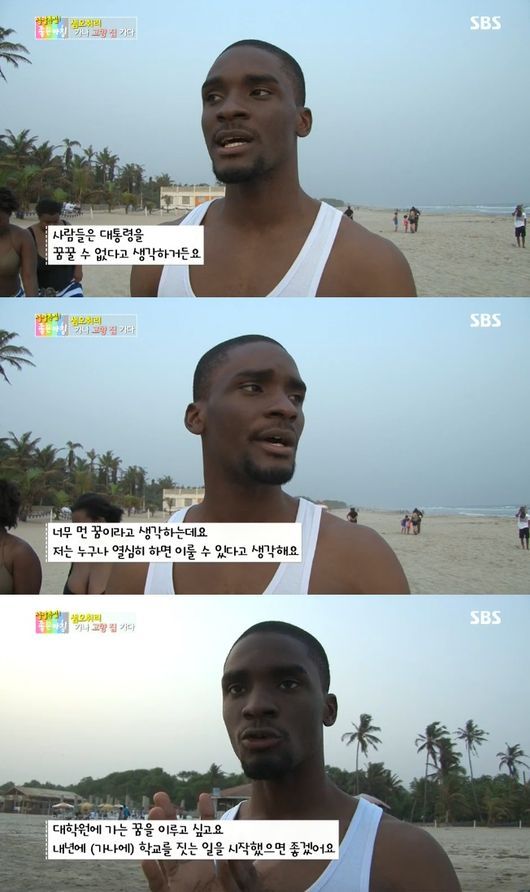 또한 올해 자신의 목표로 "대학원 가는 꿈을 이루고 싶고 땅이 있는데 내년에 가나에 학교를 짓는 일을 시작했으면 좋겠다"고 전했다.