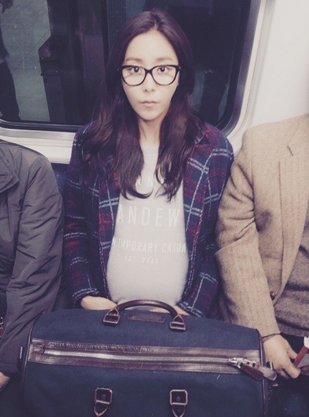 사진 속에서 유이는 편안한 차림을 하고 만삭의 배를 한 채 지하철에 앉아 카메라를 응시하고 있다.