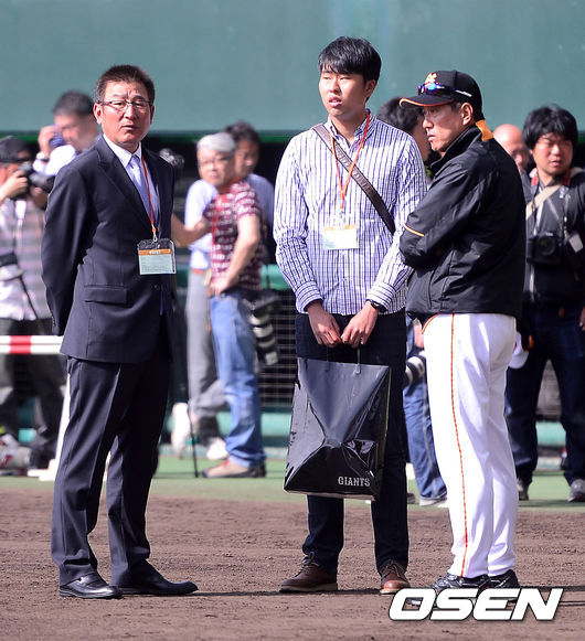 경기 시작에 앞서 KIA 김기태 감독이 경기장을 찾아 요미우리 하라 감독과 이야기를 나누고 있다.