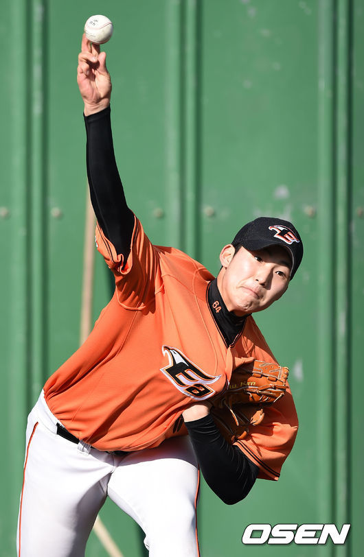 김민우는 18일 일본 오키나와 기노완구장에서 열린 요코하마 DeNA 베이스타스와 연습경기에 선발등판, 2이닝 3피안타(1피홈런) 1볼넷 3실점(2자책)으로 막았다. 비록 3점을 내주기는 했지만 공격적인 투구로 가능성을 다시 한 번 확인시켰다.