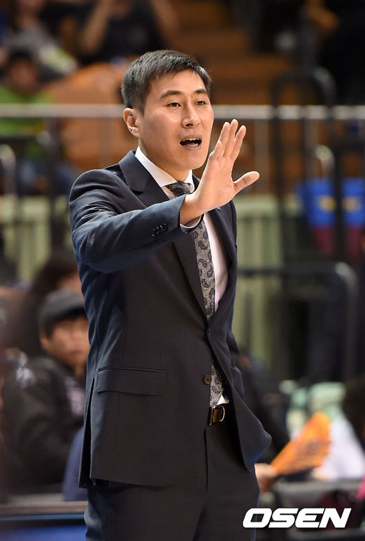 1쿼터 삼성 이상민 감독이 작전을 지시하고 있다.