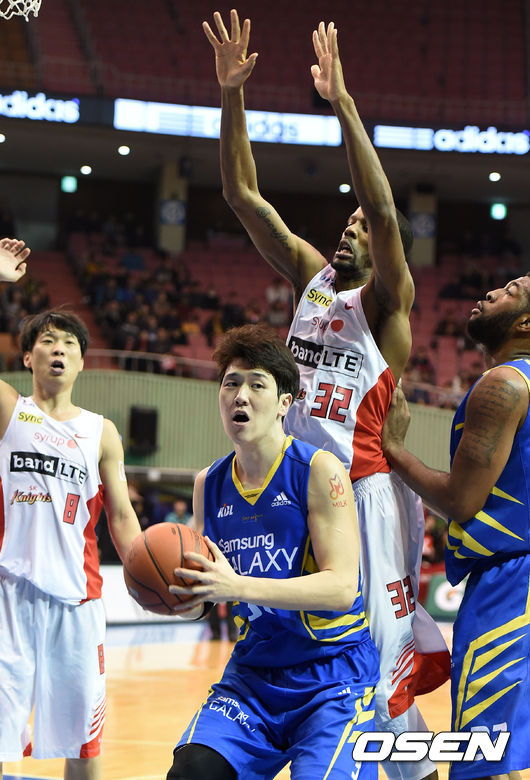 4쿼터 삼성 김준일이 반칙을 얻어내고 있다.