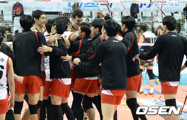 경기종료 후 LIG손해보험 선수들이 승리의 기쁨을 나누고 있다./ soul1014@osen.co.kr