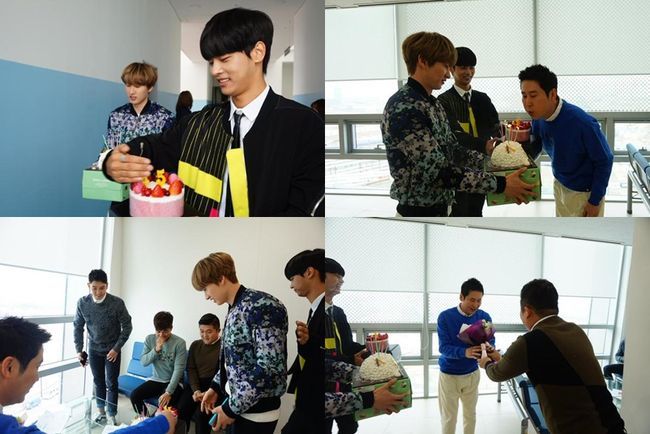 공개된 사진 속 은혁과 엔은 각각 생일 케이크를 들고 환하게 웃고 있으며, 조세호는 신동엽에게 꽃다발을 건네고 있다.