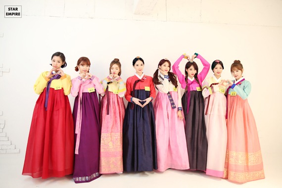 공개된 사진 속 다채로운 빛깔의 고운 한복을 차려 입은 나인뮤지스 멤버들은 세배를 하듯 두 손을 모으고 앉거나 손가락으로 하트를 그리며 카메라를 응시하고 있다. 특히, 멤버들이 하트를 그리며 서 있는 사진은 멤버들의 큰 키를 증명하듯 끝없이 긴 치마길이에 더욱 눈길이 간다.