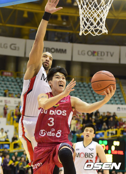 1쿼터, LG 유병훈이 골밑슛을 하고 있다.