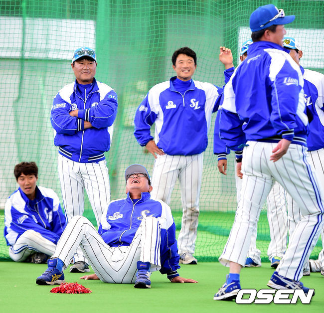 민족대명절 설을 맞아 선수단이 코칭스태프, 투수, 야수, 프런트 팀으로 나워 제기차기 내기를 했다. 류중일 감독이 제기차기를 지켜보며 즐거워하고 있다. 제기차기 1등은 프런트팀 김용성 매니저 54개, 2등은 야수팀 박한이 41개, 3등 야수팀 나바로 37개를 기록했다.