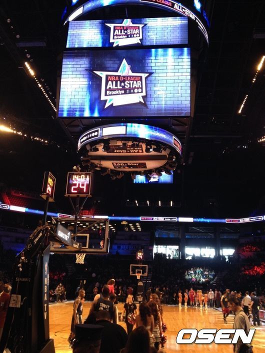 기자는 올스타전야제를 3층 꼭대기 취재석에서 봤다. 현장 열기는 느낄 수 있었지만 선수들은 개미만한 크기로 보였다. D리그 올스타전은 언론에게도 관심이 없는 경기였다. 3층 취재석이 모두 텅텅 비었다. 1층에도 빈자리가 보였다. 기자가 과감하게 1층 취재석에 가서 앉았는데 아무도 말리는 사람이 없었다. NBA경기에서 있을 수 없는 일이다. 덕분에 바클레이스 센터 코트사이드에서 경기를 구경하는 호사를 누렸다.