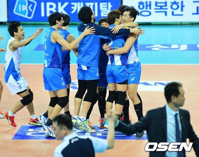 승부처는 1세트였다. 우리카드가 듀스 끝에 기선을 제압하며 이변의 서막을 열었다. 우리카드는 다비드, 김정환, 김광국 등의 득점과 상대 범실을 묶어 1세트를 27-25로 승리했다.