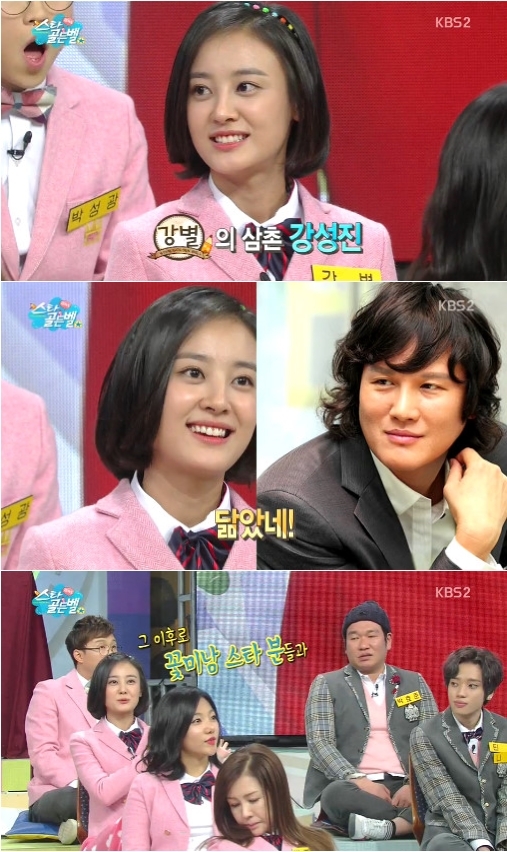 강별은 19일 오후 6시20분 방송된 KBS 2TV 예능프로그램 '2015 스타골든벨'에서 "강성진이 외삼촌이다"라고 말했다. 닮았다는 출연진들의 반응에 "하관이 닮았다"고 말했다.