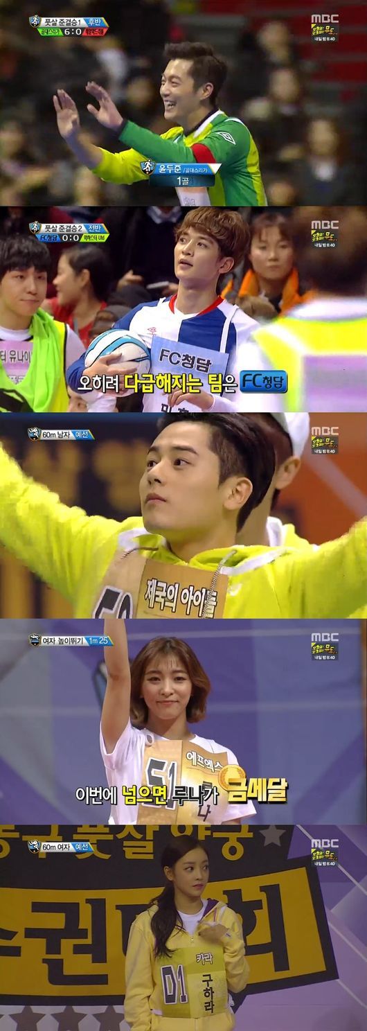 1부에서 금메달의 주인공까지 공개된 종목은 단 2가지. 여자 높이뛰기는 ‘레전드’인 루나가 금메달을 차지했다. 남자 높이뛰기는 비투비 민혁이 금메달을 가져갔다. 풋살은 민호가 속한 FC청담이 비스트 윤두준이 속한 골대스리가를 꺾으며 금메달을 차지했다. 이로써 민호는 이 대회 2연패를 달성했다.