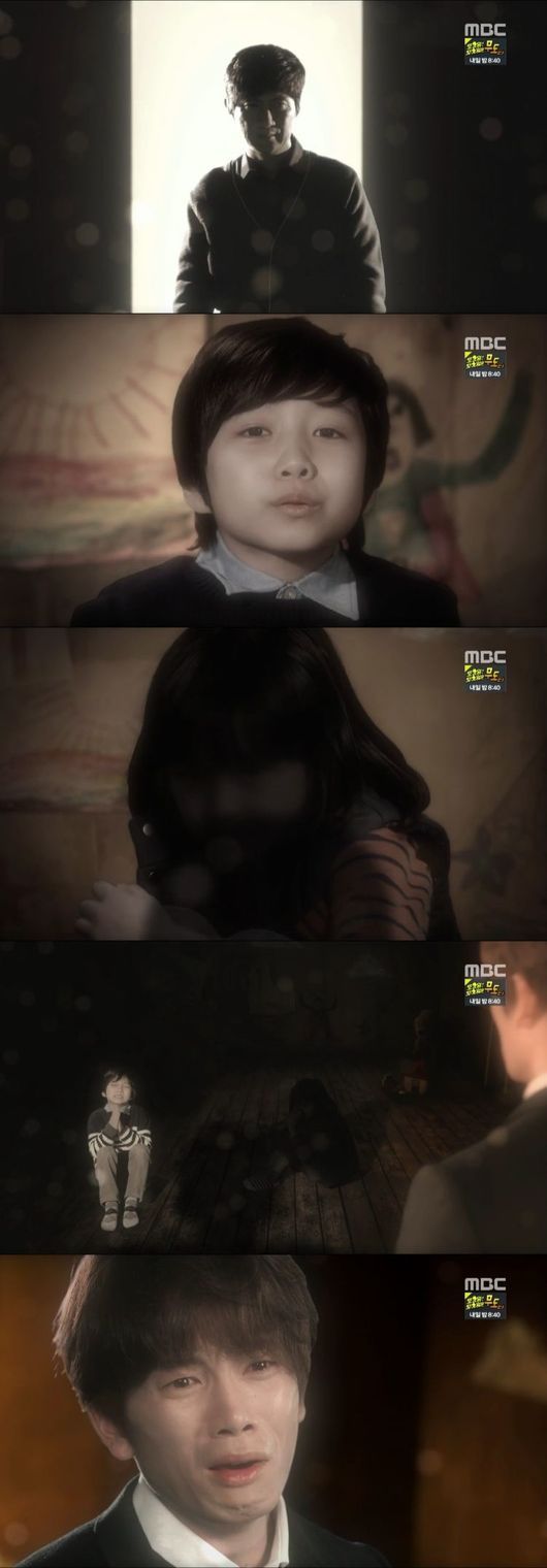 이후 자신의 아버지가 지하실에 나타나고, 도현은 "다시는 내가 지하실 안 올께"라며 빈다. 아버지는 "니가 여기에 계속 오면 누가 혼난다고 했지?"라며 여자 아이에게 손찌검을 할려는 제스처를 취했다. 도현과 여자 아이는 잘못했다고 빌며 우는 모습을 보였고, 어른 도현 역시 이 장면을 목격하며 눈물을 흘렸다.