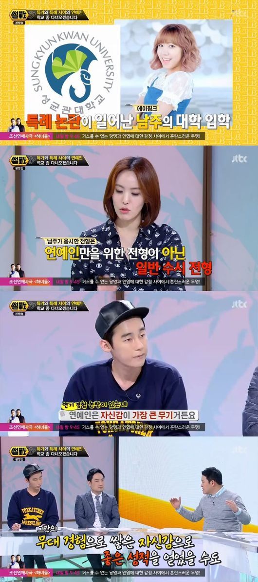 성균관대학교가 ‘썰전’을 통해 에이핑크 멤버 남주의 특례입학 의혹에 대해 해명했다.