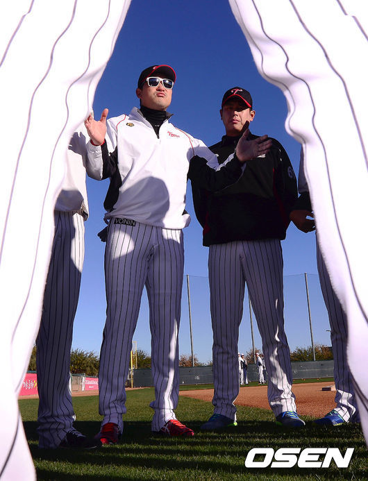 “포크볼과 슬라이더를 준비하고 있다. 오늘도 (유)원상이랑 포크볼 그립을 쥐고 캐치볼을 했다. 타자들은 지금까지 ‘봉중근은 직구 커브 체인지업’이라는 생각을 했을 것이다. 이렇게 구종을 추가하면 타이밍을 빼앗기가 수월해진다. 타자들은 매년 향상된다. 그래서 투수가 똑같은 구종으로 버티기란 쉽지 않다. 구종을 늘리는 것은 꼭 필요하다고 본다. 이번에 애리조나에서 현진이에게 슬라이더를 배운 이유도 여기에 있다. 자존심 때문에 후배한테 배우지 않는 것은 없다. 내가 이렇게 후배들에게 배우는 모습을 보여주면, 후배들도 나한테 와서 내 구종을 배워간다. 슬라이더를 배우며 좌타자에 대한 자신감이 생겼다. 현진이와 이야기하면서 많은 것을 느꼈고, 이 슬라이더를 통해 이전과는 많이 다른 모습을 보여줄 수 있을 것 같다.”