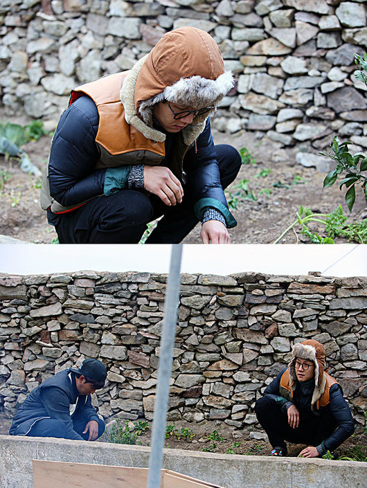 앞서 공개된 사진은 정우의 '활약'을 예고하는 장면이다. 마당에서 생강을 뜯어오라는 차승원의 지시대로 텃밭을 뒤지고 있으나 뭐가 생강인지 몰라 당혹스러운 표정이 웃음을 자아낸다. 또 다른 사진에서는 혹시 혼날까 봐 조마조마해 하면서 뭐가 생강인지 손호준과 상의하고 있다.