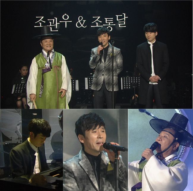 조관우&조통달은 판소리 ‘심청가’와 동요 ‘엄마야 누나야’를 접목, 조통달은 명창다운 힘 있는 구음과 함께 대북 연주를, 조관우는 절대 미성을 자랑하는 가창력을 뽐냄과 동시에 가야금 연주를 선보여 눈길을 사로잡는다. 또 조관우의 아들 조현이 피아노 연주로 힘을 보태며 삼대가 함께하는 뜻 깊은 무대를 꾸민다.