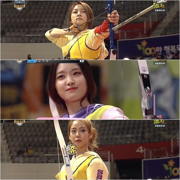 에이핑크가 카라를 상대로 양궁에서 승리를 거뒀다.