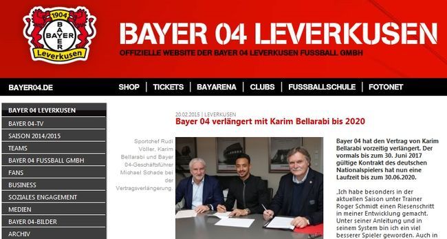 레버쿠젠은 20일 공식 홈페이지를 통해 "벨라라비와 2020년까지 계약을 연장했다"고 발표했다.