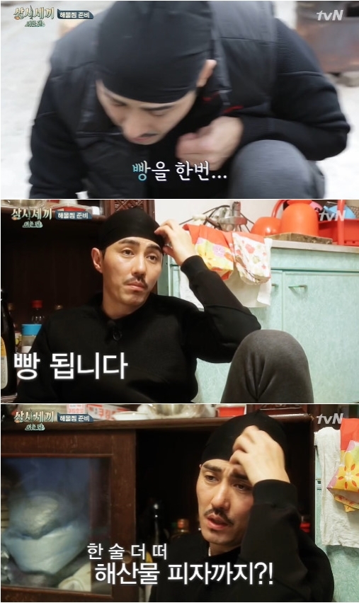 이날 차승원은 오후 2시부터 해물찜 양념장을 만드는 등 바쁜 모습을 보여줬다. 이내 못쓰는 아궁이를 오븐 삼아 빵을 한 번 구워 먹어야 겠다고 말해 손호준을 놀라게 했다. 차승원은 "밀가루 강력분이 너무 많이 남았다"며 빵을 만들 결심을 한 이유를 설명했다. 해산물 피자도 욕심을 냈다. 떨리는 목소리로 "언제 만드시게요?"라고 묻는 손호준의 질문에 차승원은 "빨리해서 해야지"라고 여유롭게 답해 웃음을 자아냈다.