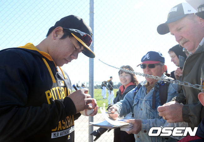 강정호가 현지 팬들에게 사인을 해주고 있다.