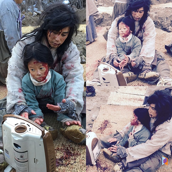 특히 분장을 하고 장시간 야외 촬영을 하느라 힘들 법도 한데 시종일관 아역배우를 꼭 껴안아주며 함께 난로를 쬐는 등 각별한 애정을 보이며 아들 바보의 면모를 드러냈다.