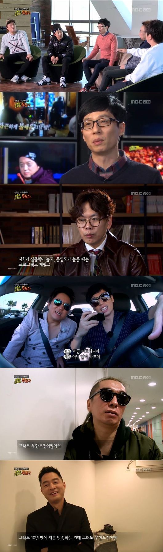 지난 20일 방송된 MBC 설특집 다큐멘터리 '토요일 토요일은 무도다'(이하 '토토무')에서는 '토요일 토요일은 가수다'(이하 '토토가') 특집 촬영을 담으며 '무한도전' 멤버들과 '토토가' 출연진의 이야기를 그렸다. '무한도전'이 왜 10년이 넘게 방송됐는지, 유래없는 롱런에 성공할 수 있었는지를 보여준 특집이었다.