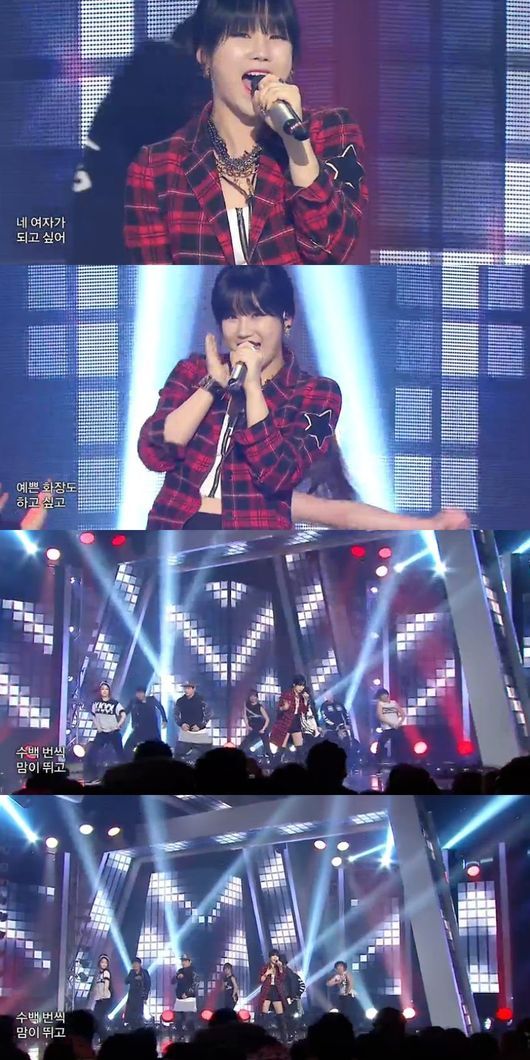연두는 21일 오후 방송된 MBC '쇼! 음악중심'에서 '여자가 되고 싶어'로 오프닝 무대를 꾸몄다.