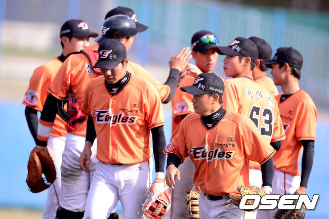 한화는 21일 일본 오키나와 아카마구장에서 열린 삼성과 연습경기에서 3-2 역전승을 거뒀다. 지난 17~19일 연습경기에서 3연패한 한화는 이날 우승팀 삼성을 맞아 주전 선수들을 출격시키며 승리를 따냈다. 고치 캠프 포함 스프링캠프 연습경기에서 3승4패를 마크했다. 삼성은 2승2패1무.