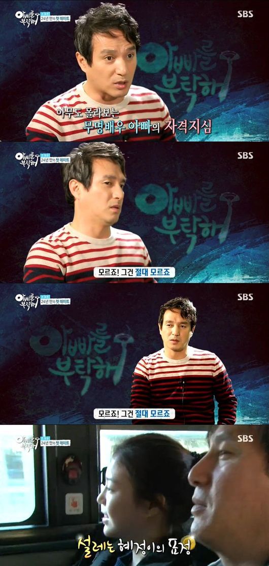 그는 함께 집을 나서는 장면 이후 등장한 인터뷰 장면에서 "처음으로 한 데이트다. 과거에는 더 못 다녔다. 아무도 알아보지 못할 것이라는 무명배우의 자격지심 때문에 딸과 어디 나가기가 싫었다. 혜정이는 모를 것"이라고 고백했다.