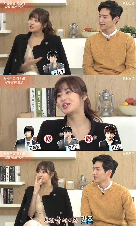 배우 강소라가 서강준의 매력 중 하나로 눈동자를 꼽았다.