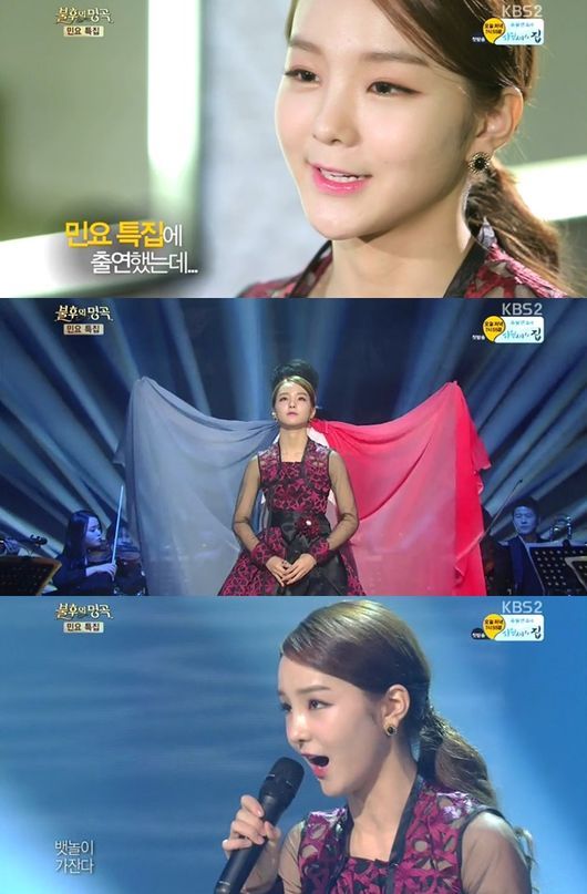 또한 ‘국악소녀’답게 민요 무대 역시 훌륭했다. 명창 조통달 그리고 박애리의 무대를 보며 “내가 국악을 하지만 아직 한참 멀었다는 것을 느낀다”는 겸손함을 표한 것이 무색하리만큼 완벽한 무대를 선보였다. “민요 특집이 유리할 수도 있지만 오히려 불리할 수도 있다”면서 유독 긴장된 모습을 보이던 그는 무대에 오르자 ‘자진 뱃노래’를 구성지게 부르며 보는 이들의 몰입도를 높였다.