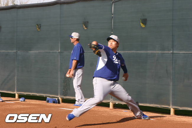 LA 다저스 류현진이 22일(이하 한국시간) 다저스 스프링캠프 첫번째 불펜 피칭에 임하고 있다.