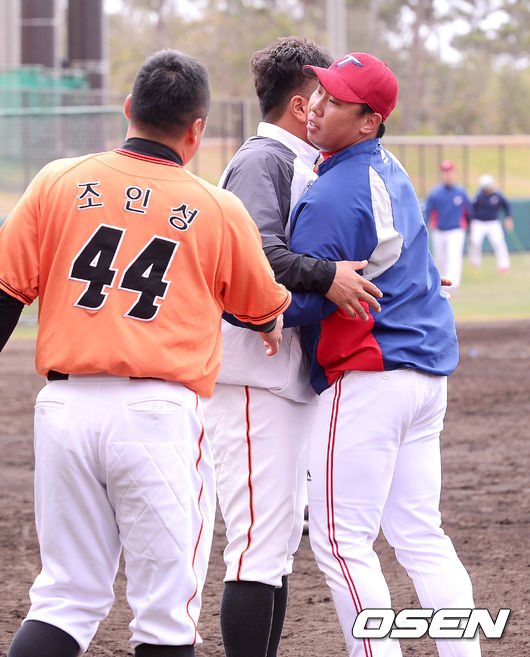 KIA 타이거즈 스프링캠프가 차려진 일본 오키나와 킨구장에서 KIA와 한화 이글스의 연습경기가 열렸다.