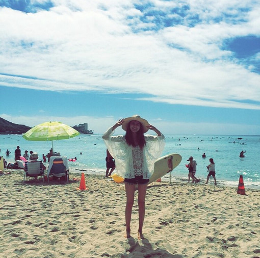 공개된 사진 속 수영은 푸른 바다가 펼쳐진 해변에 서서 카메라를 향해 환히 미소 짓고 있는 모습이다. 이전의 게시글에서 하와이에 있다고 밝힌 수영은 핫팬츠 아래로 드러난 길고 날씬한 각선미로 보는 이들의 시선을 사로잡고 있다.