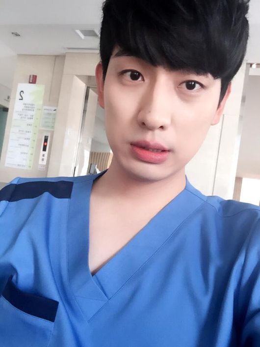 윤박은 22일 오후 자신의 트위터를 통해 “수술복. 어게인 어게인 앤 어게인”이라는 글과 함께 사진 한 장을 게재했다.
