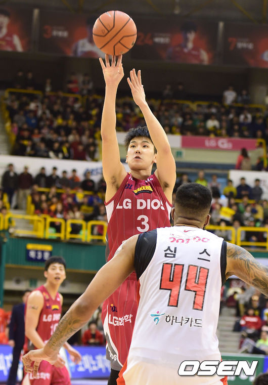 4쿼터, LG 유병훈이 슛을 하고 있다.
