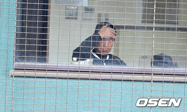 한화 김성근 감독이 감독실에서 경기를 지켜보고 있다. /jpnews@osen.co.kr