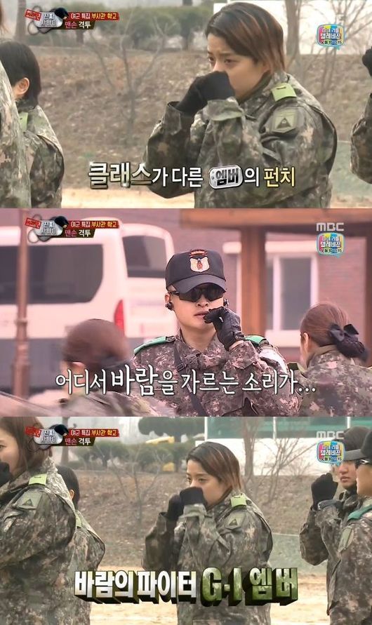 엠버는 22일 오후 방송된 MBC 예능프로그램 '일밤-진짜 사나이'에서 맨손 격투에 앞서 펀치 연습에 돌입했다.